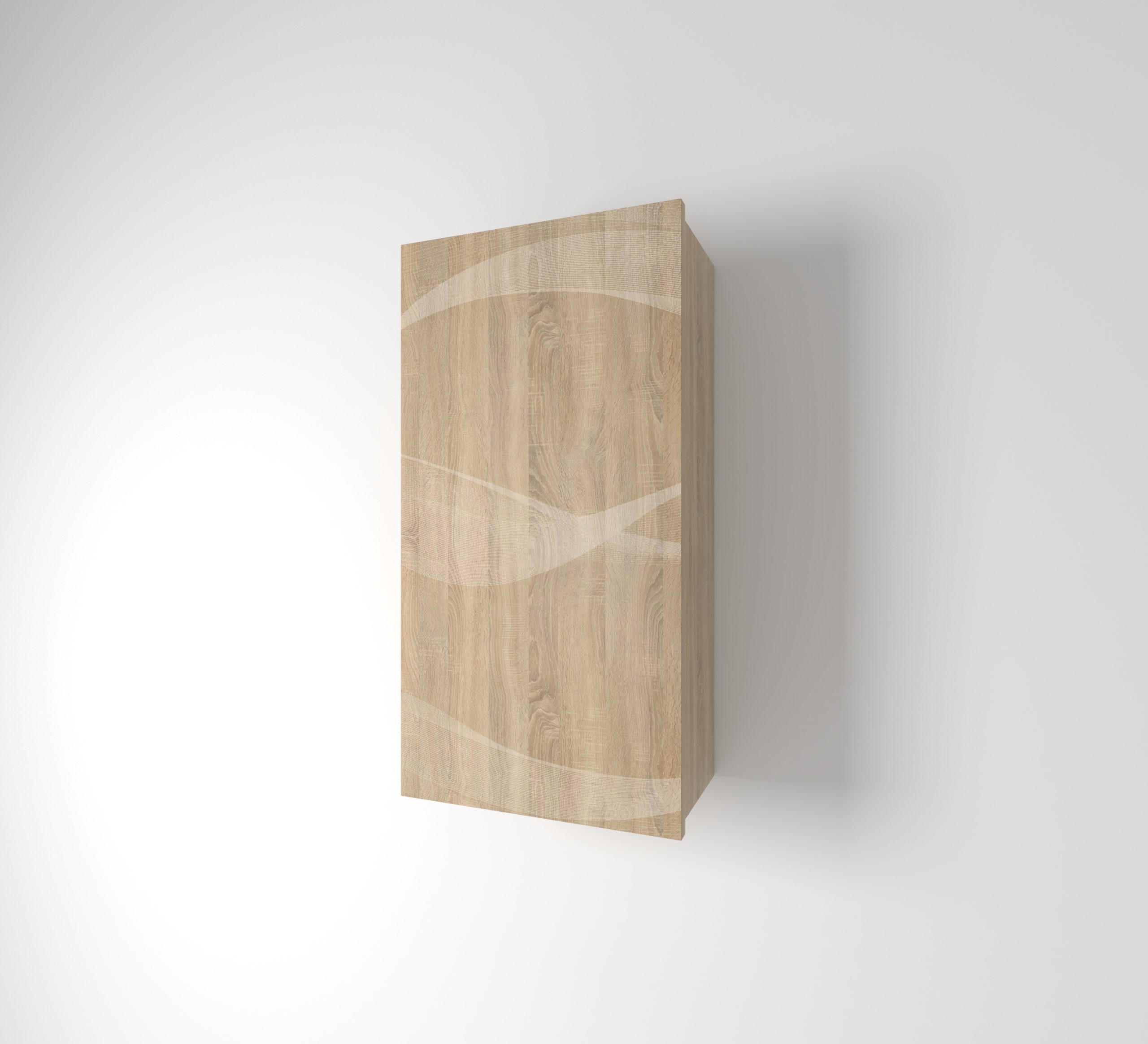 Complemento de baño de 36×35 cm realizado en material estratificado con puerta decorada mediante láser y cierre softclosing. Estante de cristal templado interior regulable en altura incluido.