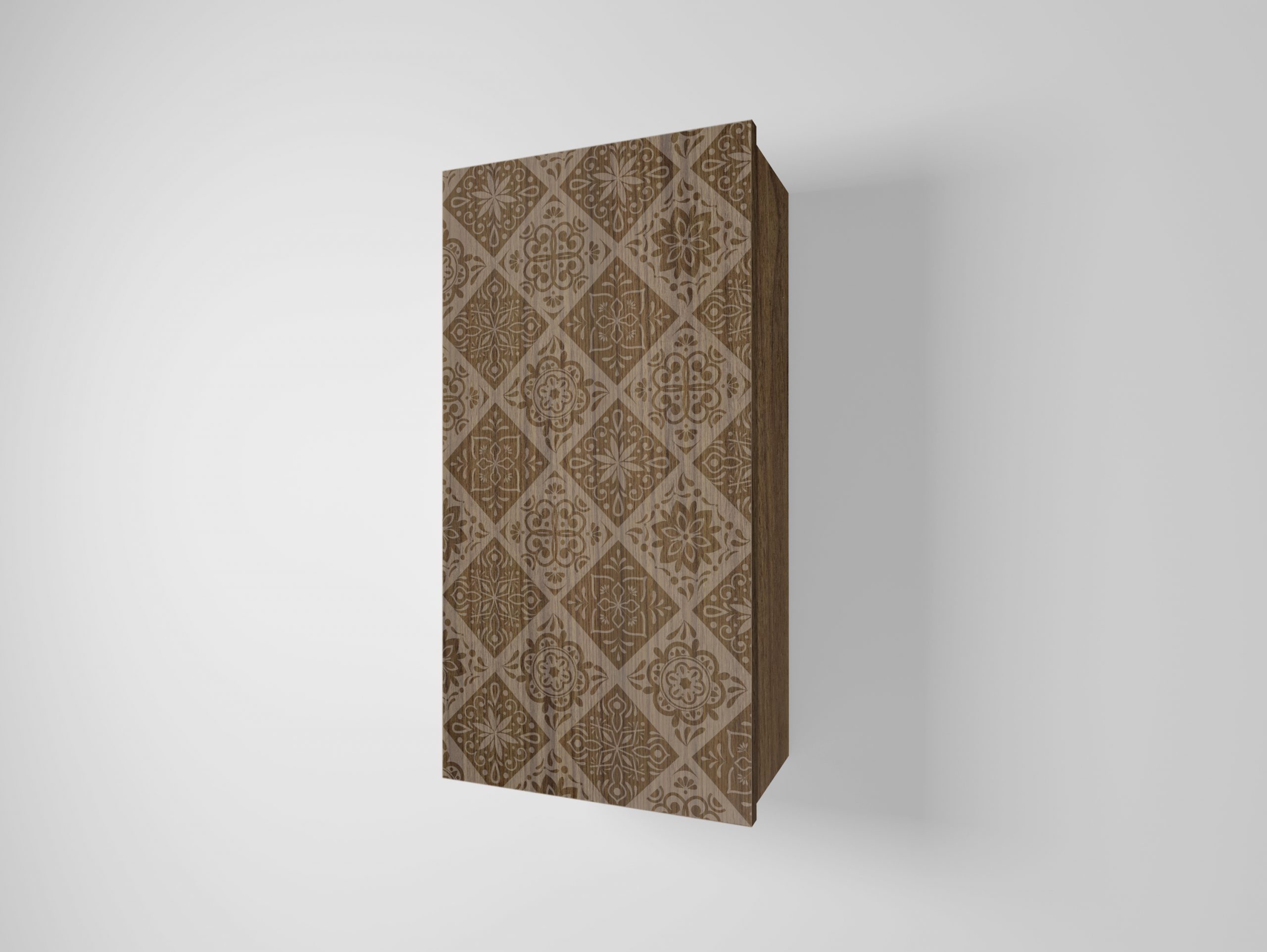 Complément de salle de bain de 36×35 cm réalisé en matériau stratifié avec porte décorée par technique laser et fermeture softclosing. Comprend une étagère réglable en hauteur, en verre trempé, à l’intérieur. Charnières avec fermeture softclosing testées à 80 000 cycles réglables dans les trois axes. Supports muraux capables de supporter jusqu’à 30 Kg par support. Bords réalisés en PVC de 1mm. Fabriqué en Espagne.
