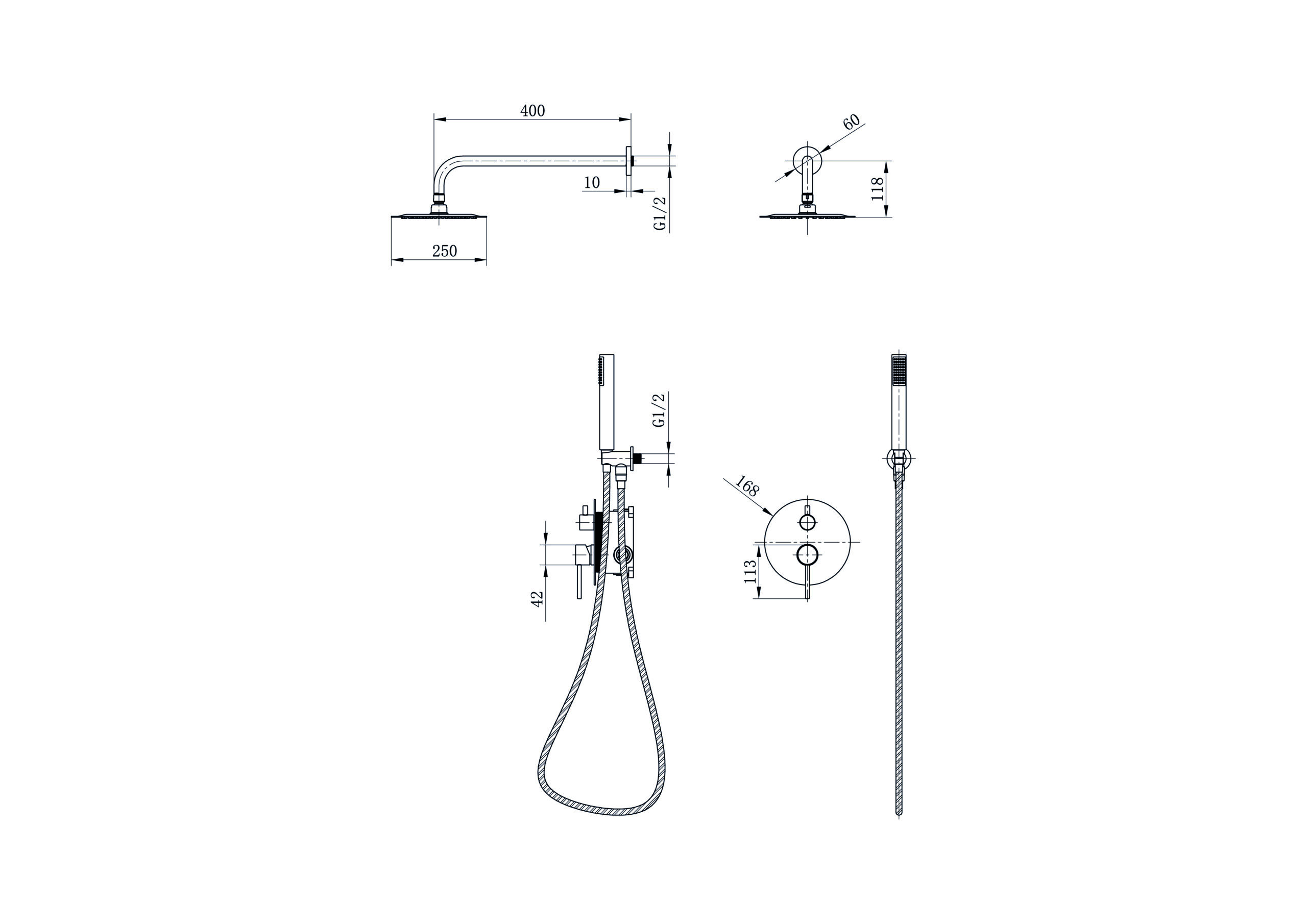 Pommeau en acier inoxydable S.304 ¯25 cm, extra-plat, finition chrome et anti-calcaire.