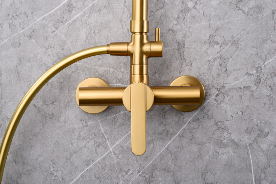 Support de pommeau de douche rglable en hauteur, finition or bross.