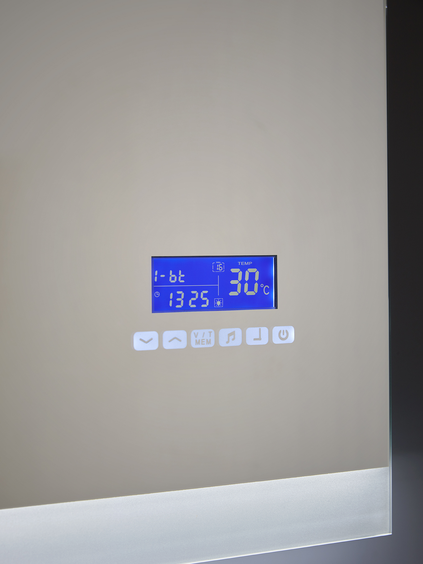 Miroir de salle de bain de 120×70 cm avec éclairage LED et radio. Allumage tactile, écran avec horloge, indicateur de température, radio Bluetooth pour connecter votre téléphone portable, avec haut-parleurs intégrés. 16,8W, 2080 lumens, 12V, IP65. Lumière blanche.