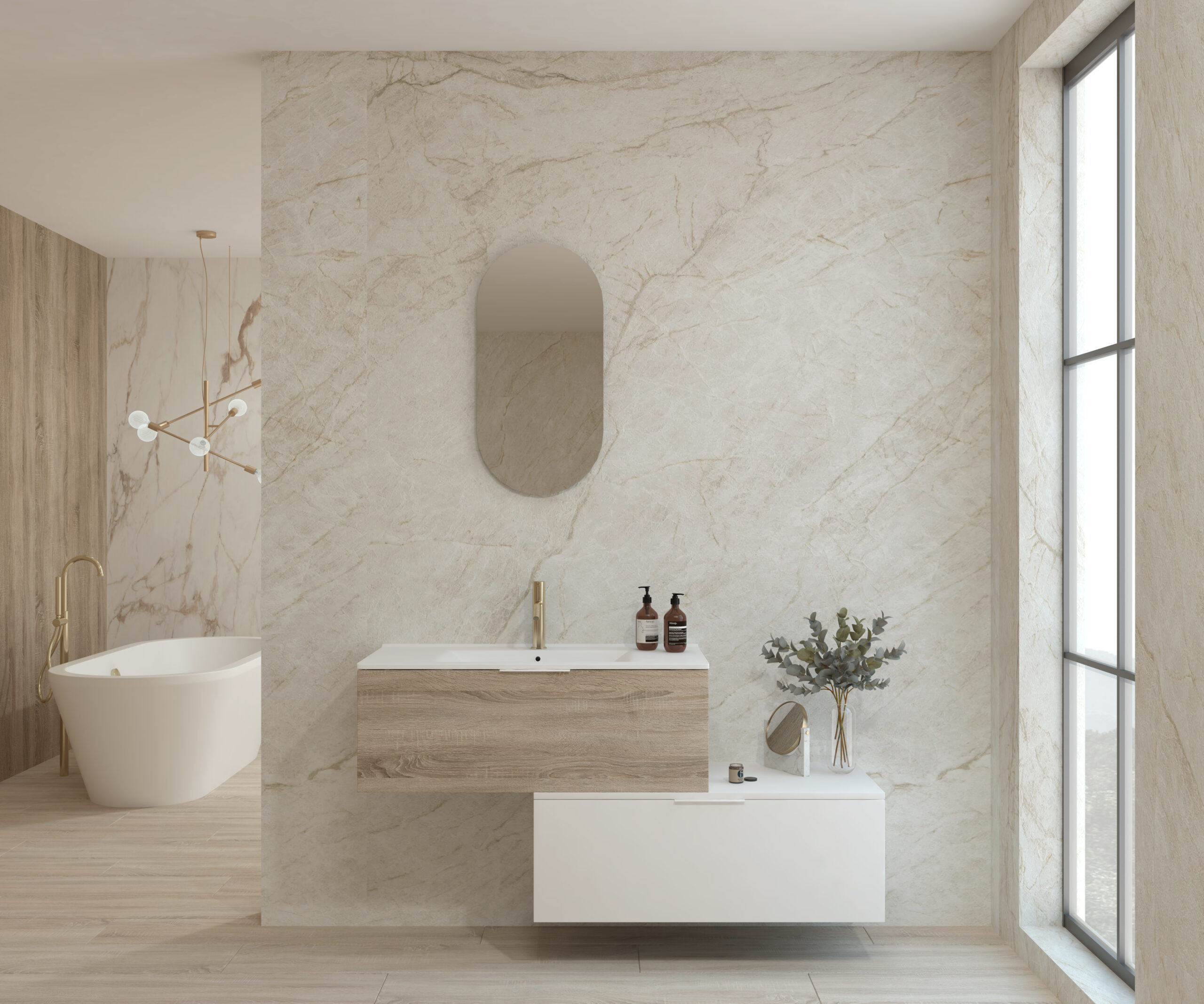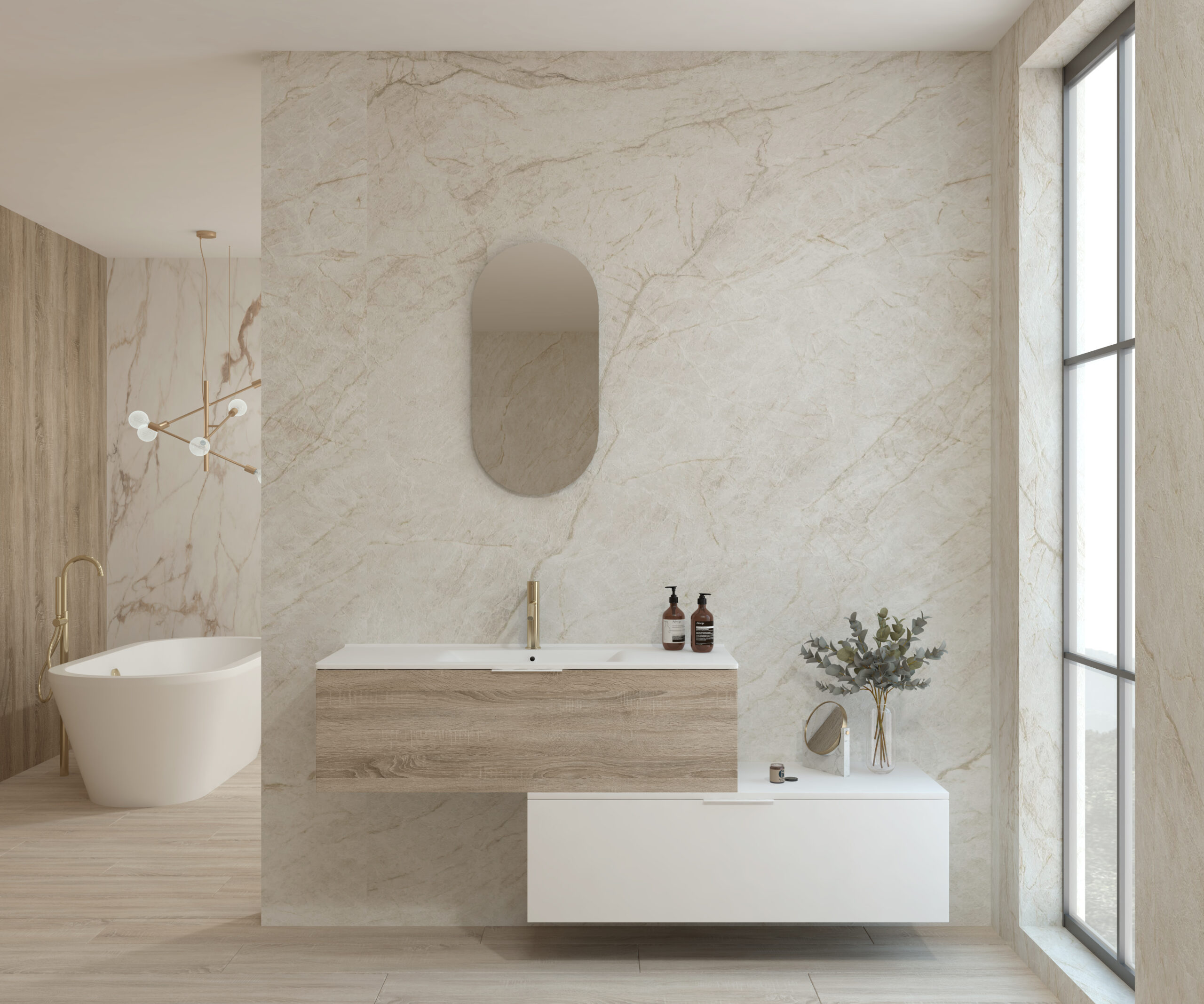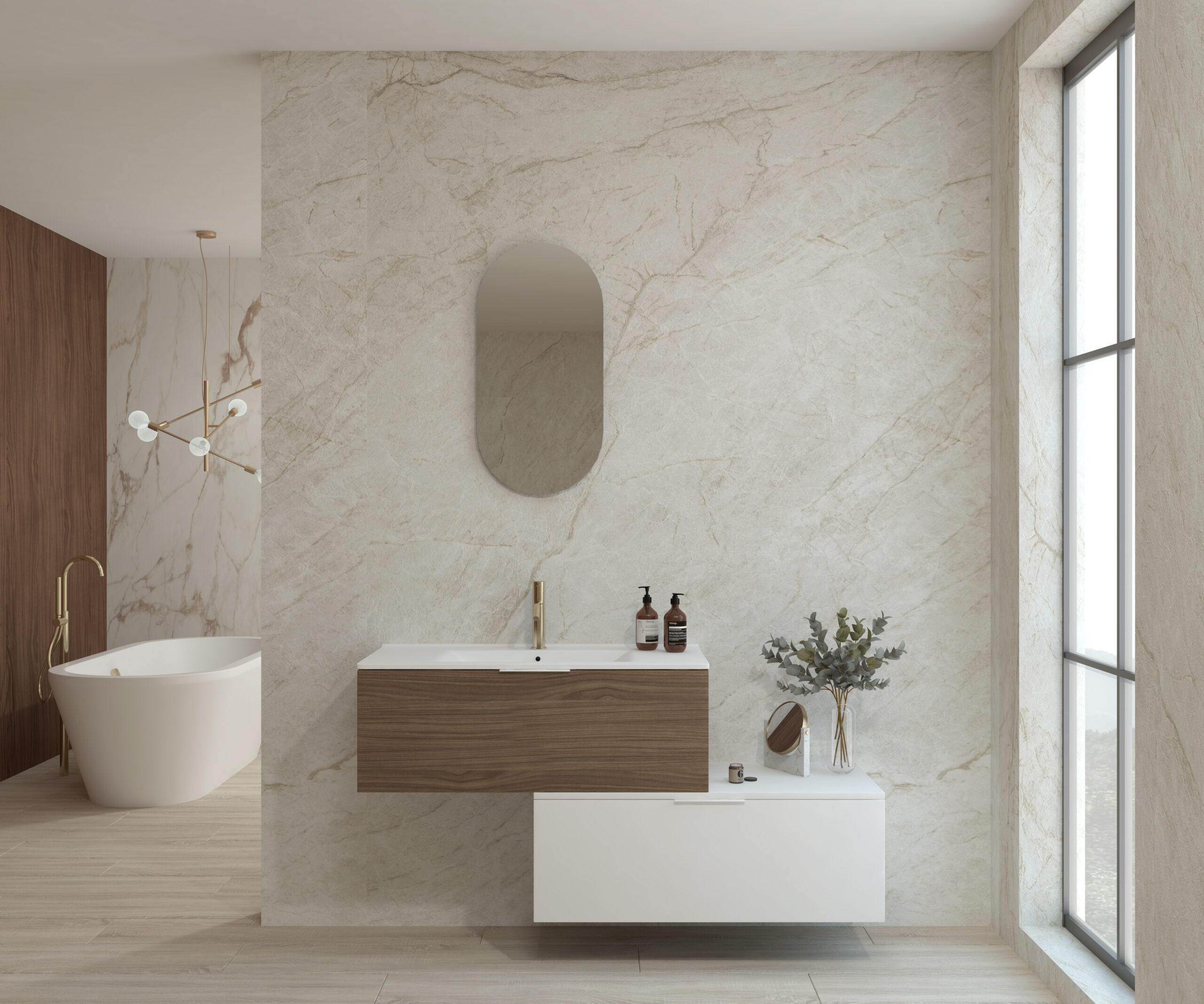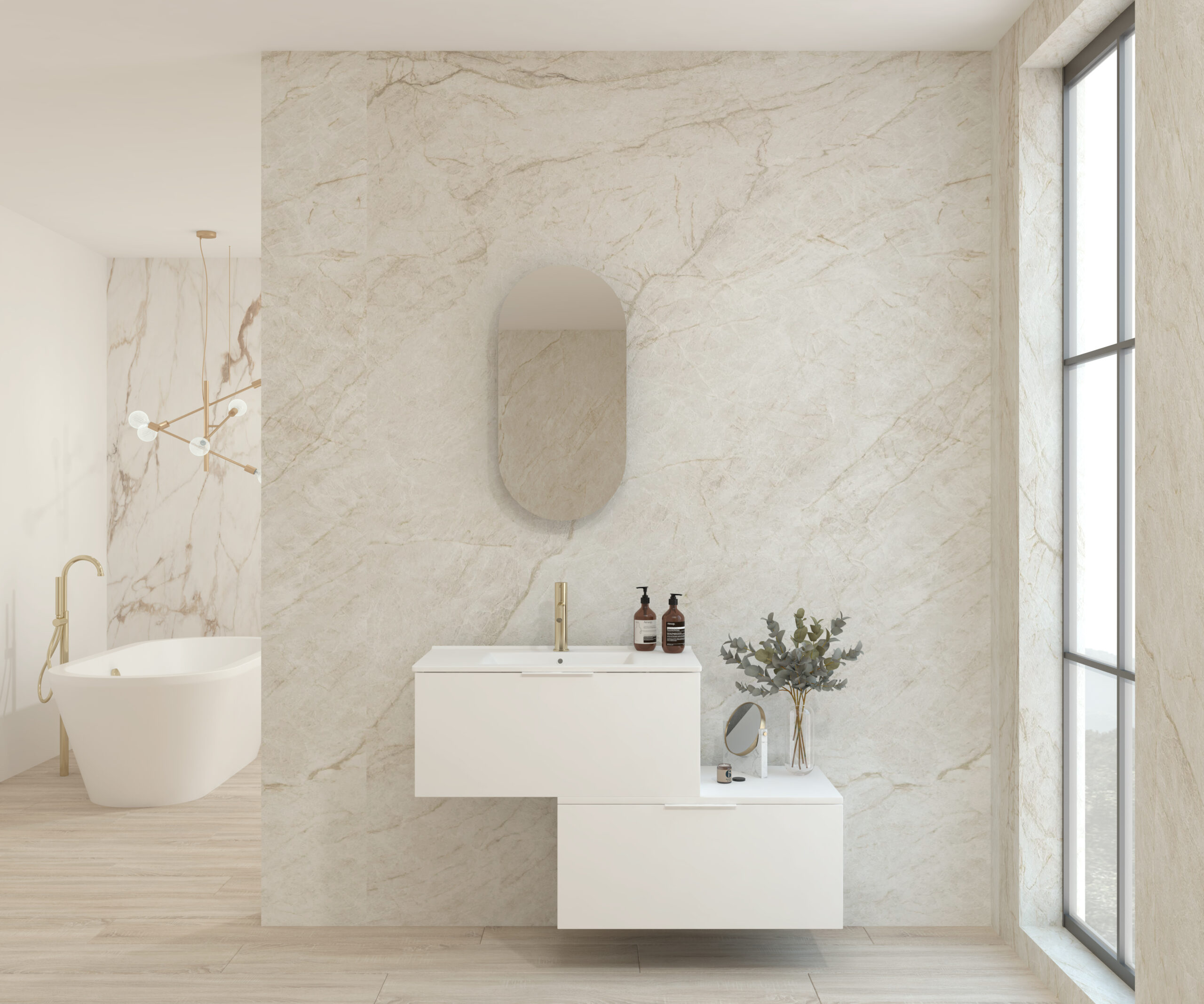 Ensemble meuble de salle de bain, lavabo, miroir design capsule.