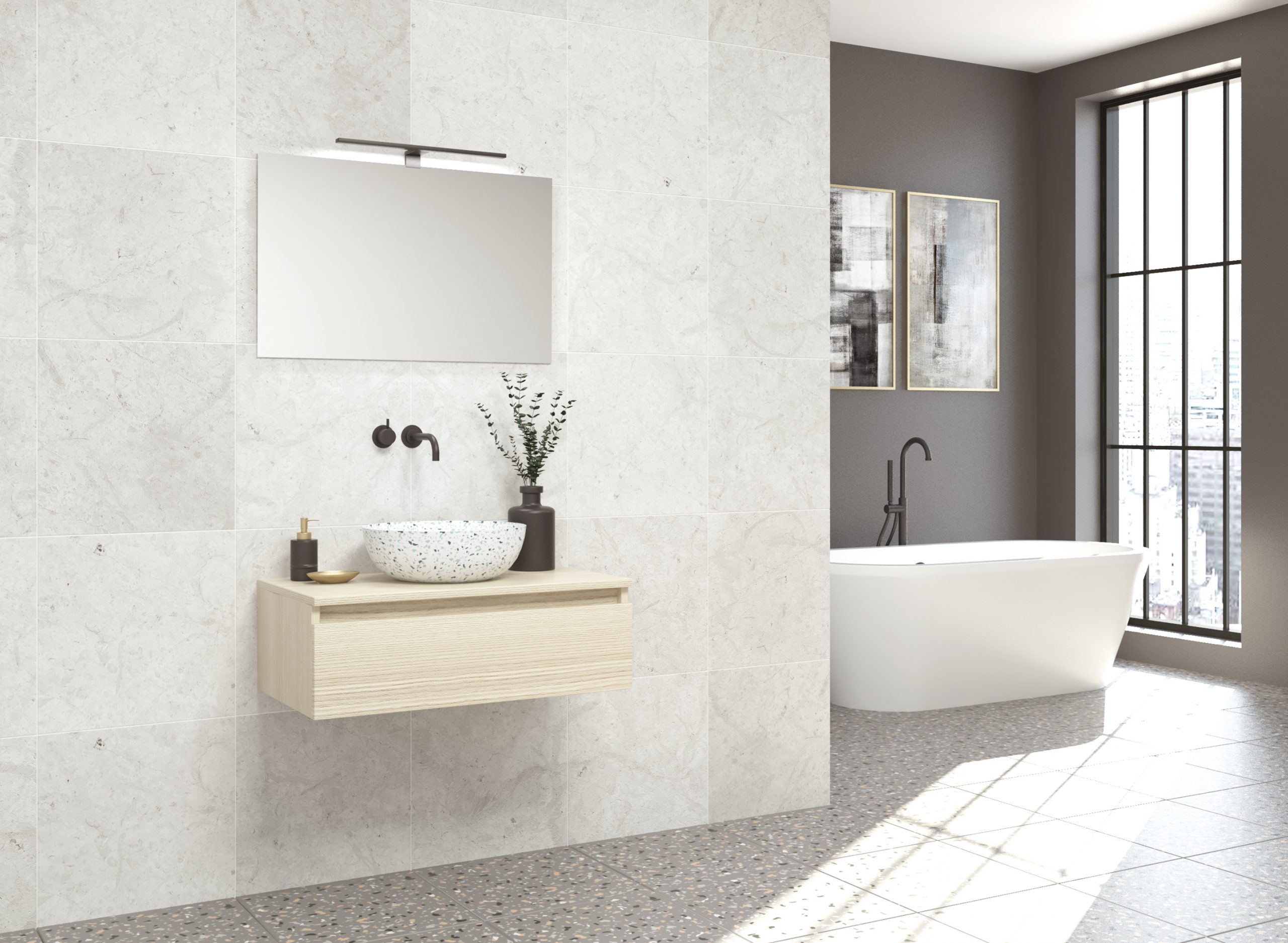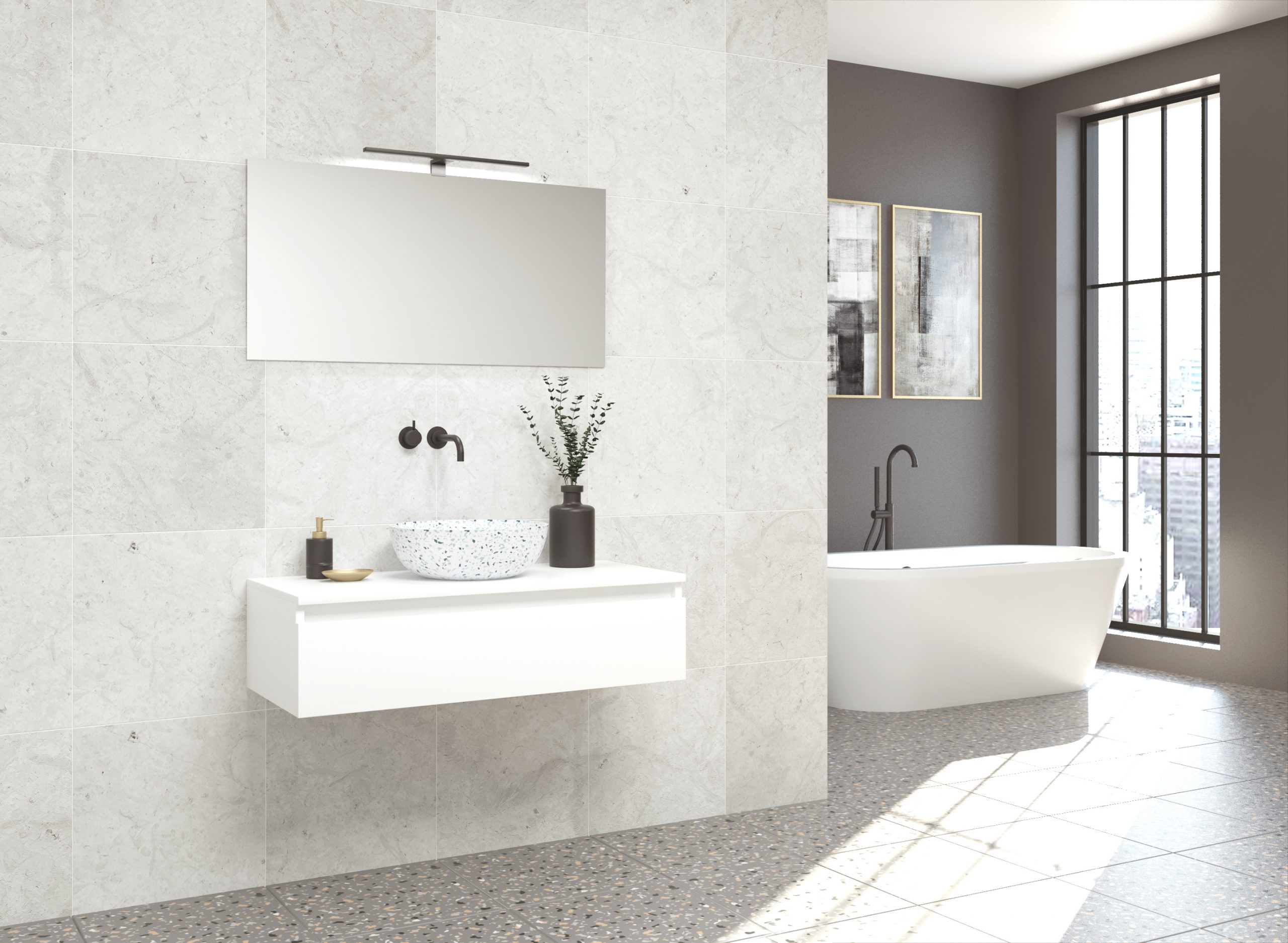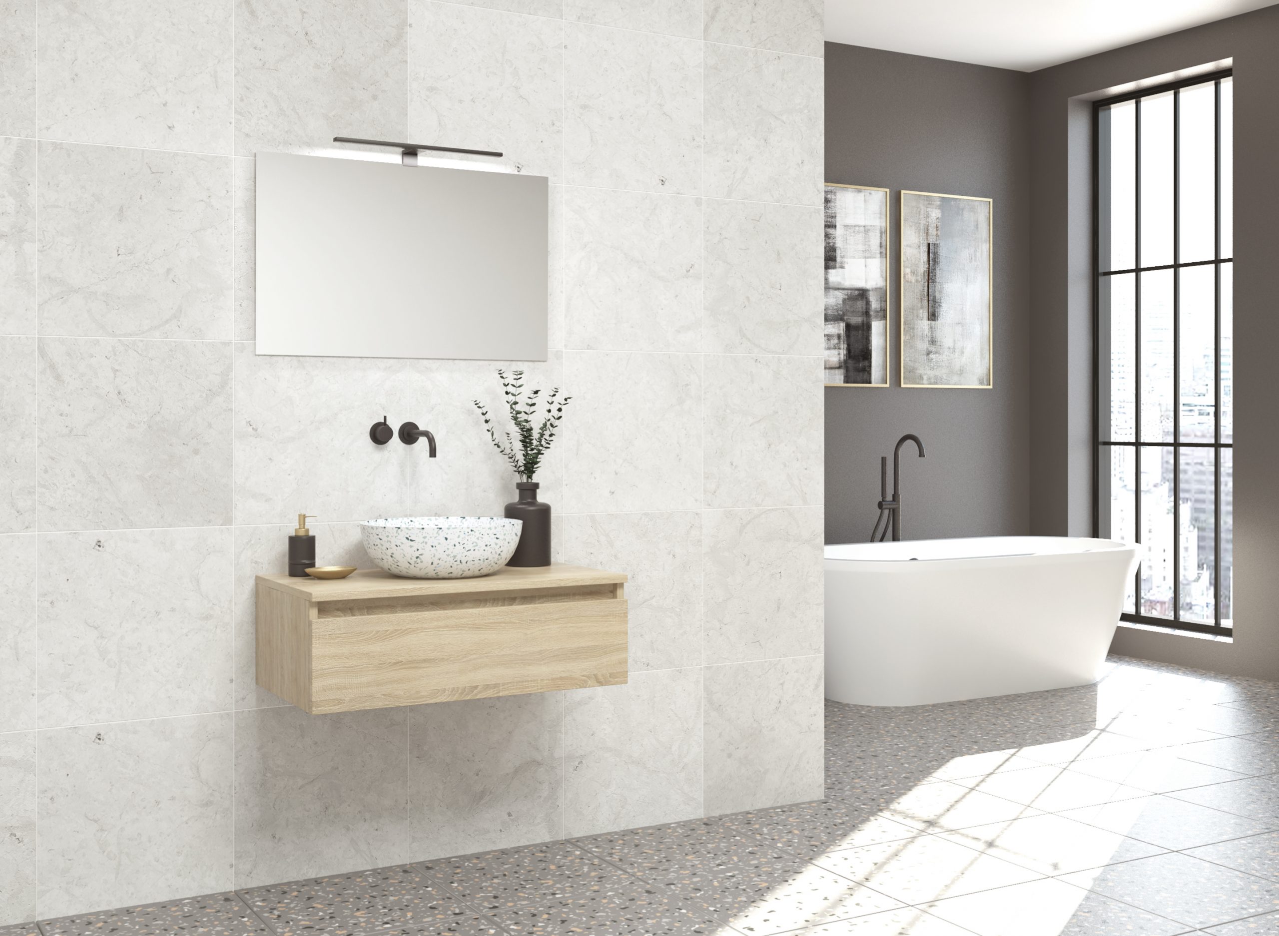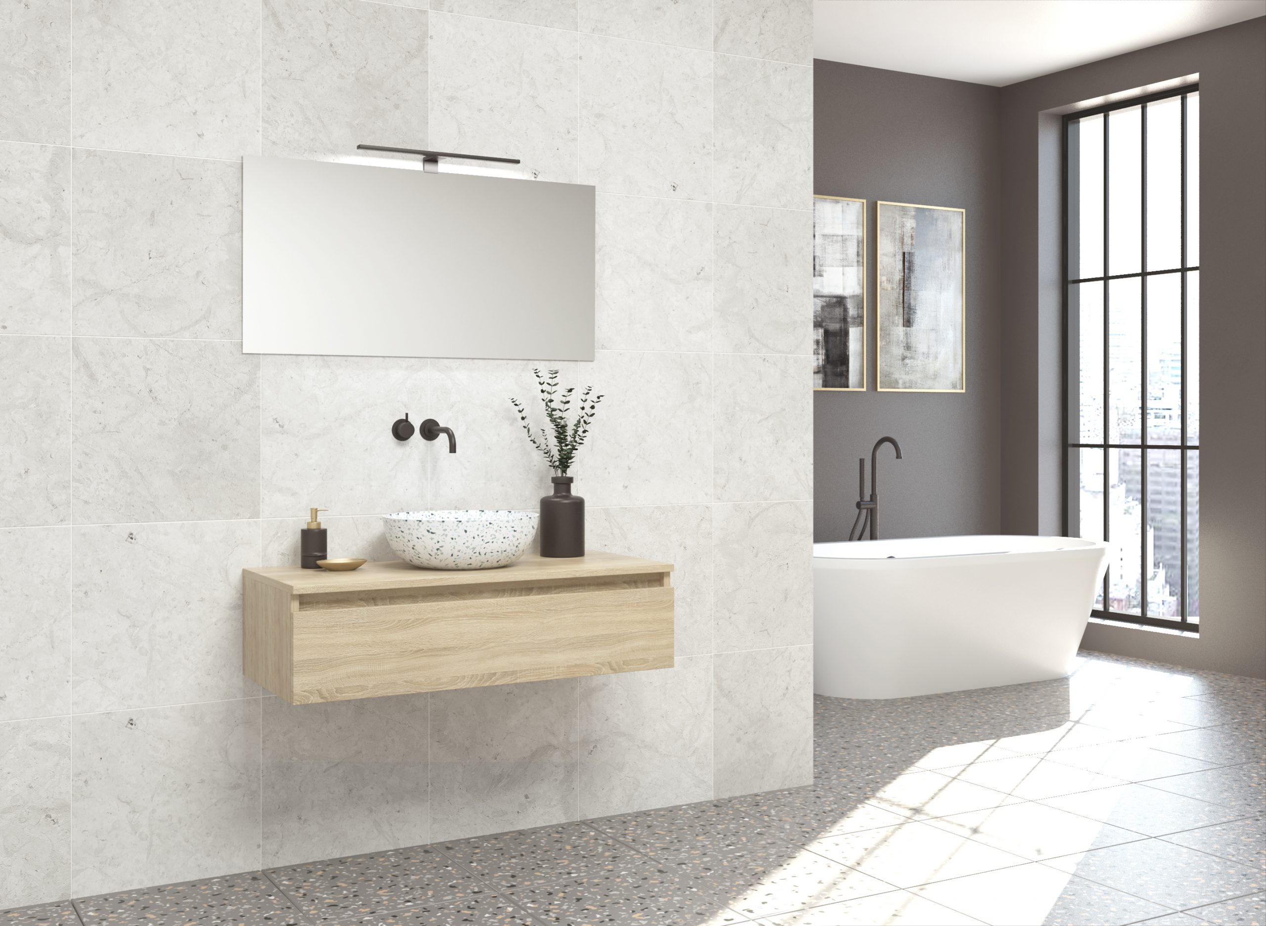 Pack MÔLE + lavabo beige + miroir + spot LED