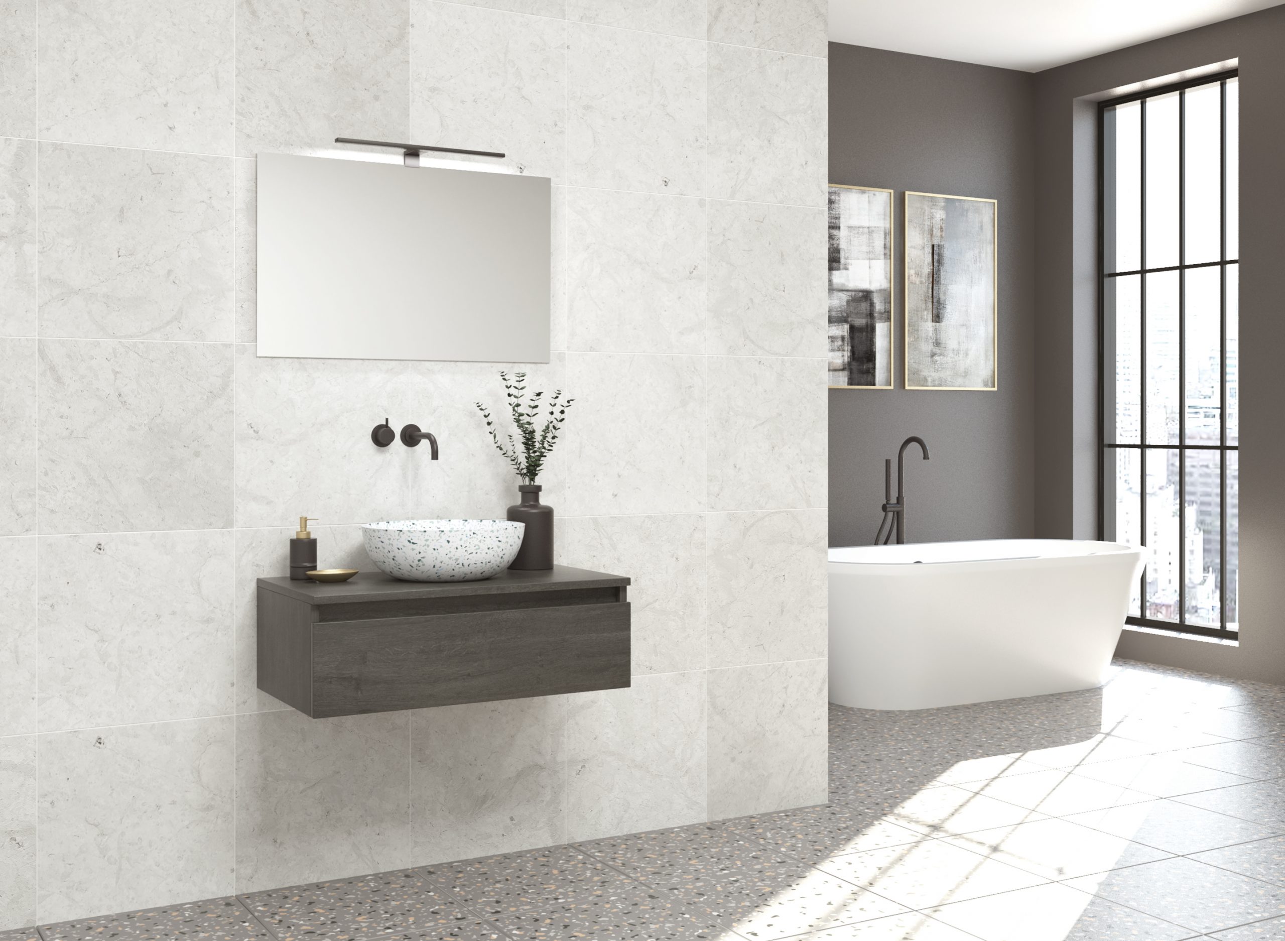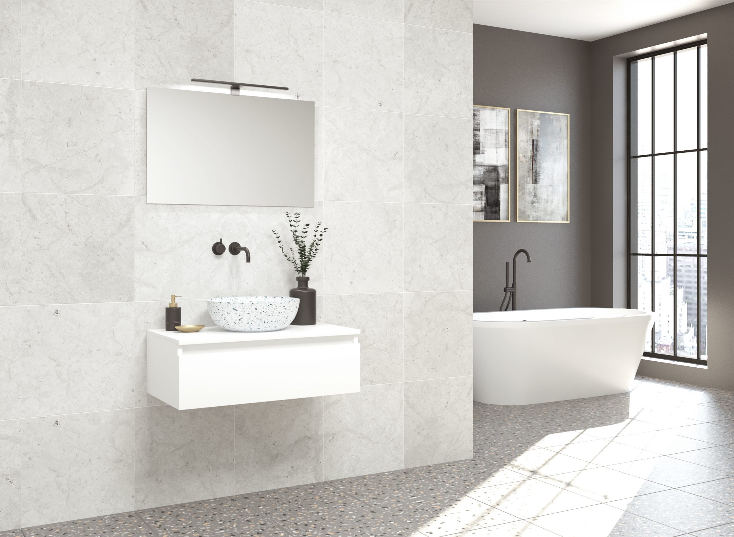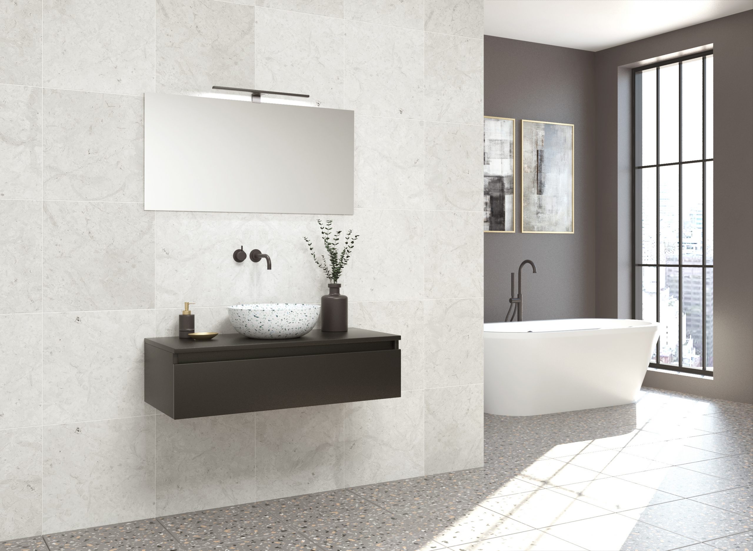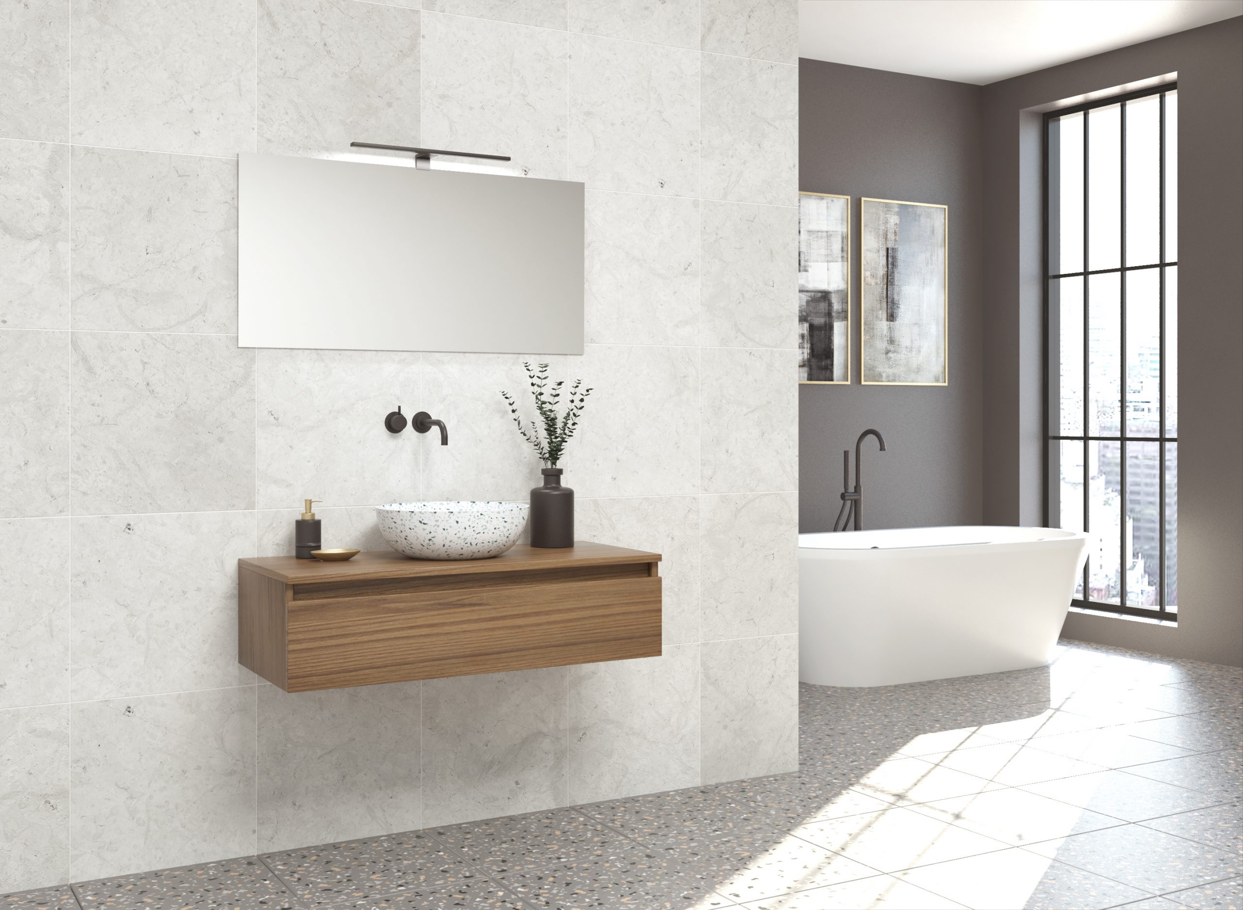 Pack MÔLE + lavabo beige + miroir + spot LED