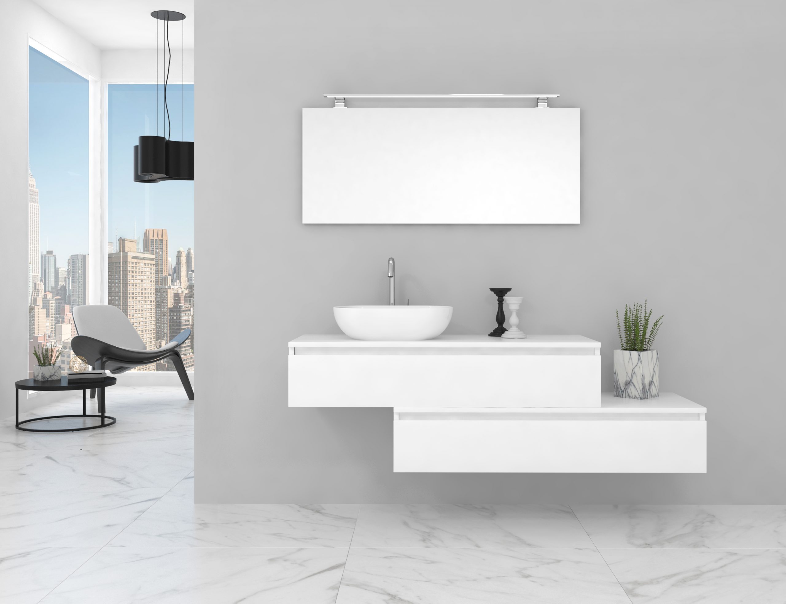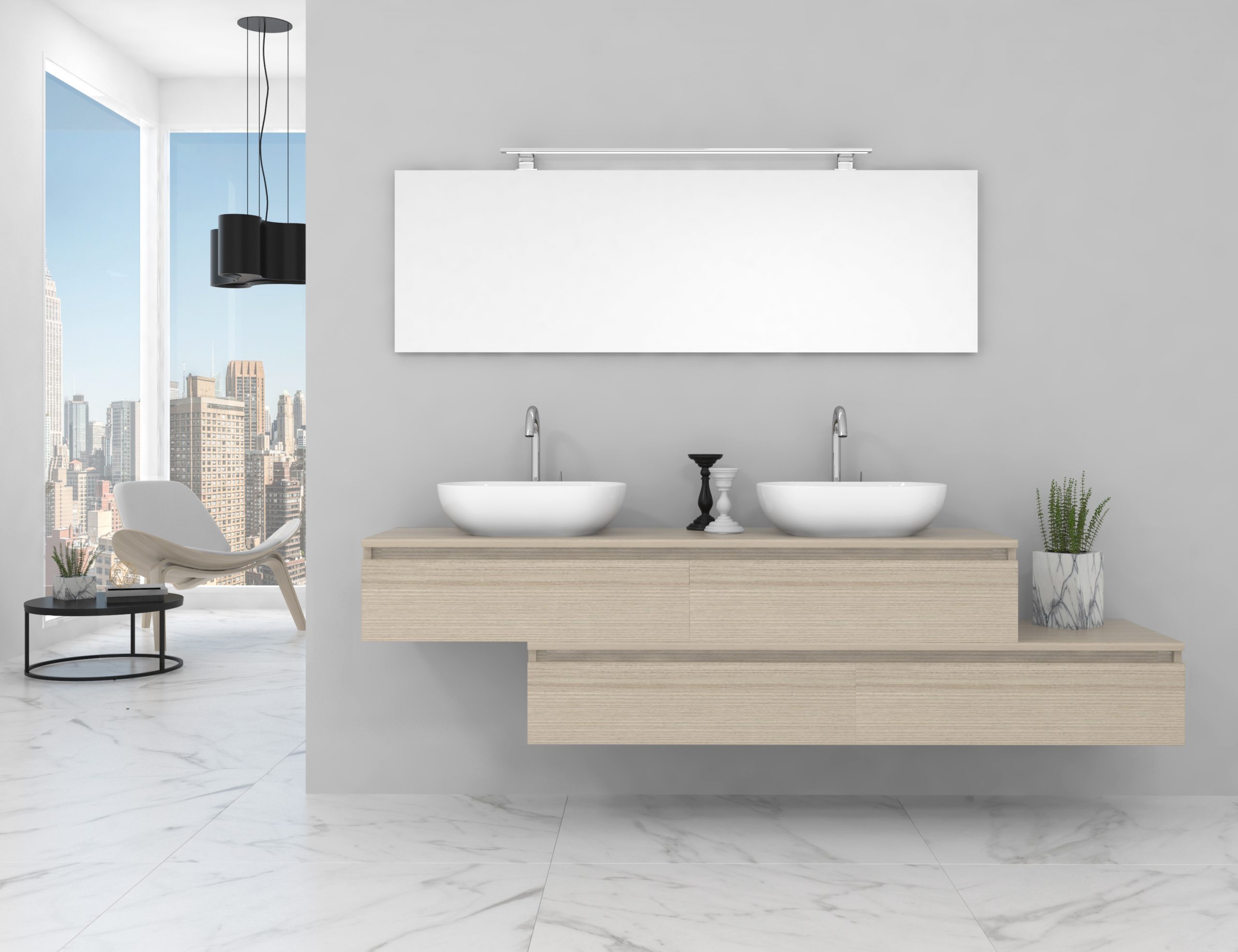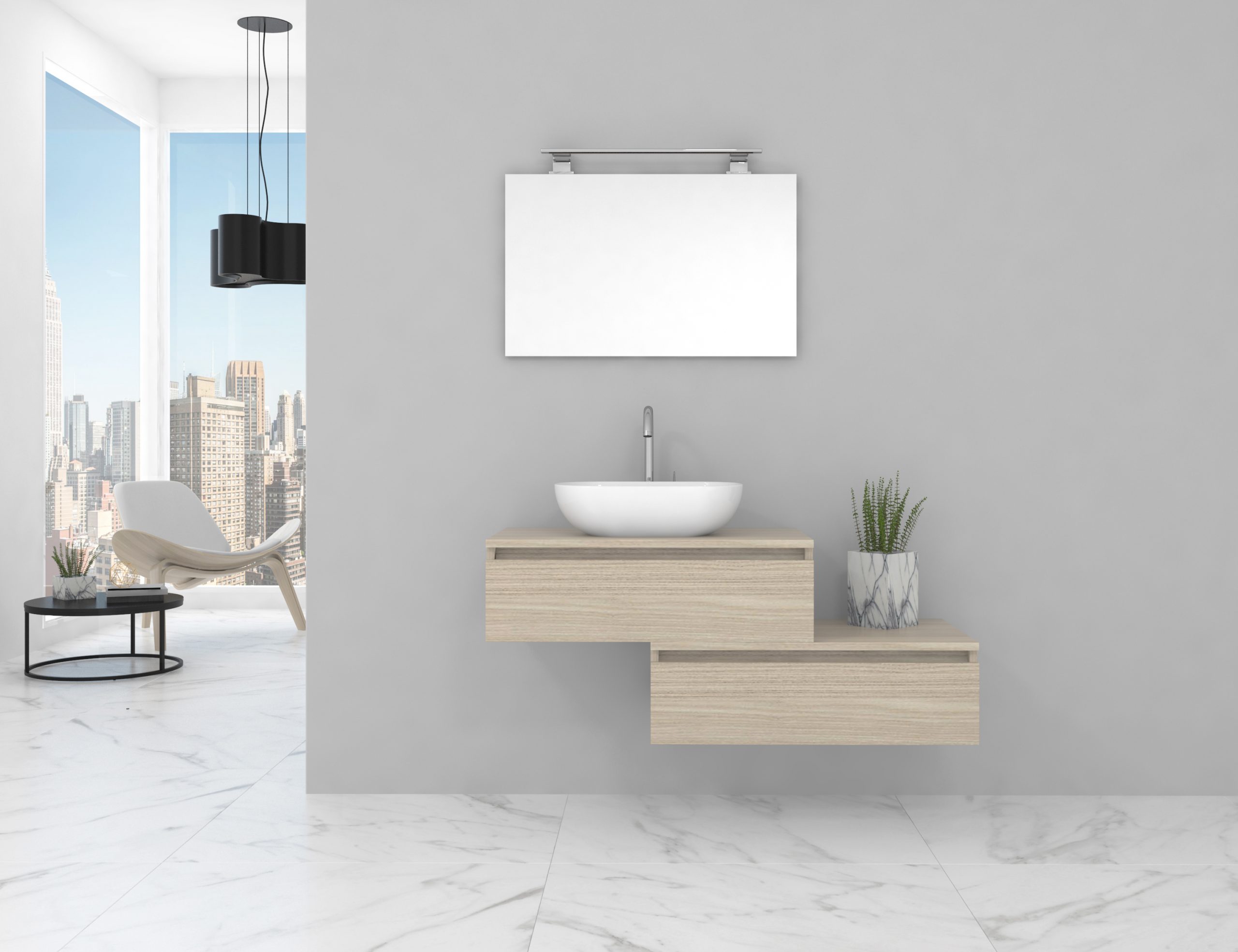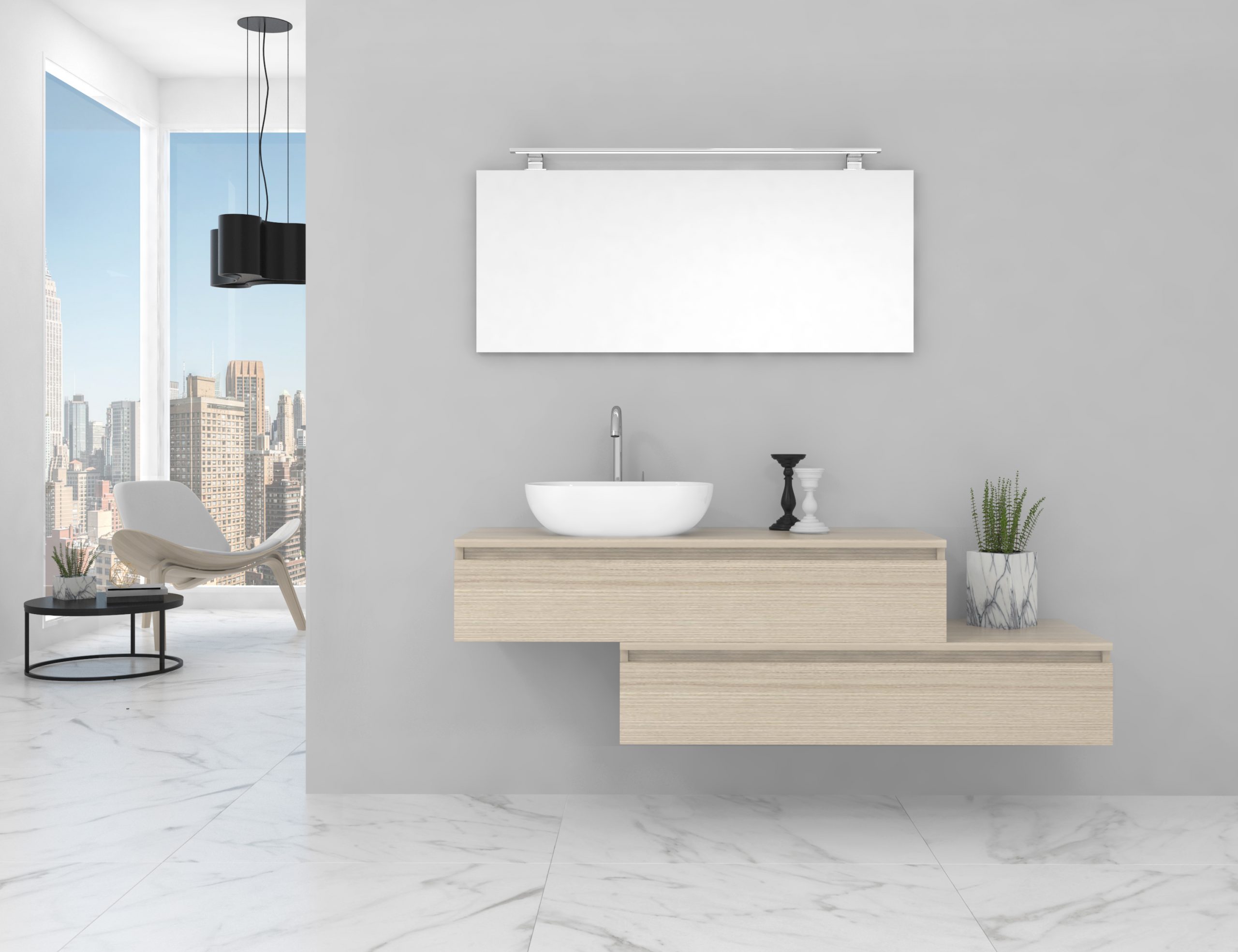 Pack compuesto por mueble de baño realizado en material laminado acabado madera, con dos módulos con cajones de gran capacidad y cierre softclosing. Incluye lavabo sobreencimera cerámico de color blanco, espejo liso y foco iluminación LED. Made in Spain.