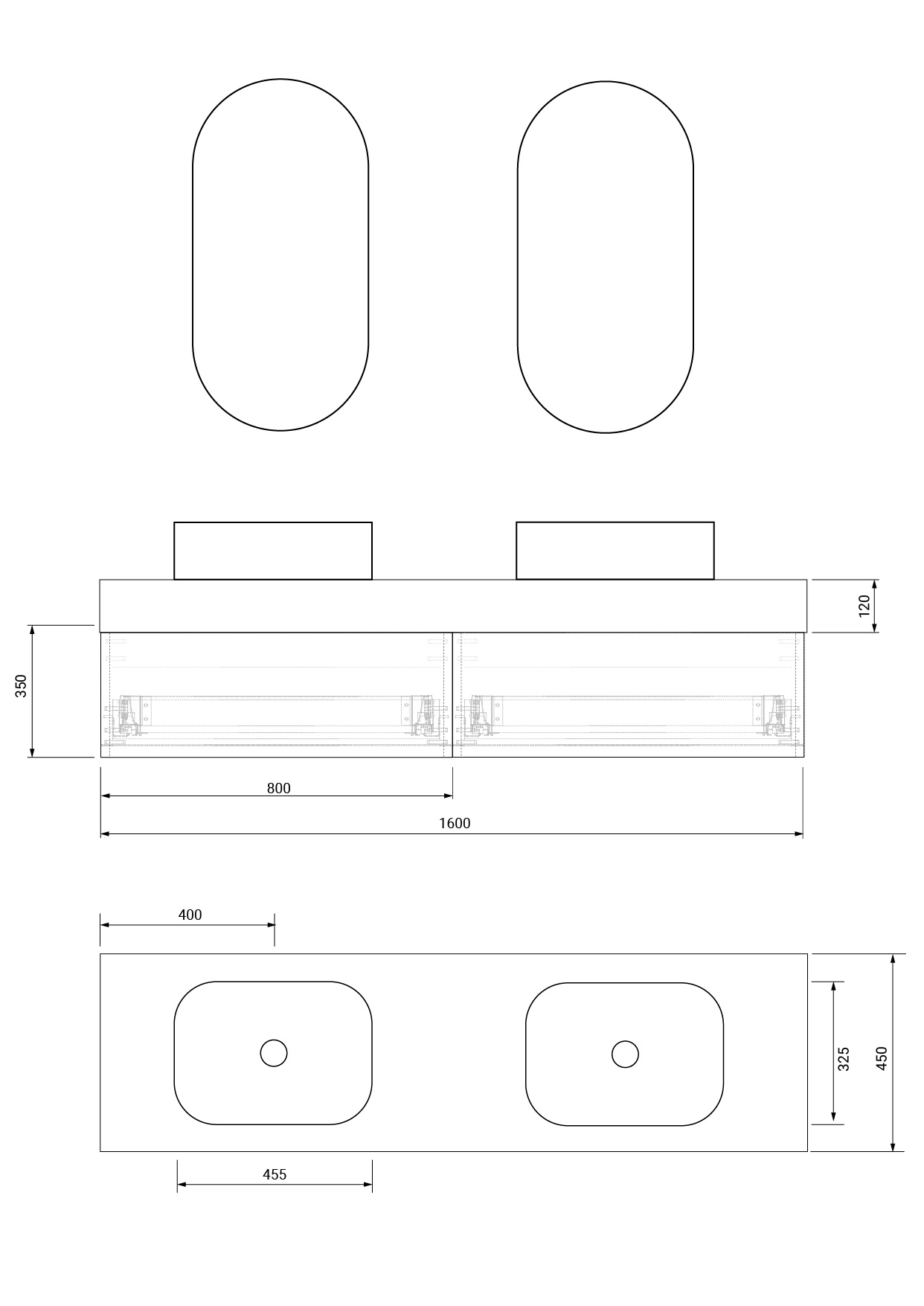 Pack compuesto por mueble de baño realizado en material laminado 19 mm, con tres cajones de gran capacidad y cierre softclosing. Incluye lavabo sobreencimera cerámico de color blanco, espejo liso y foco iluminación LED. Made in Spain.