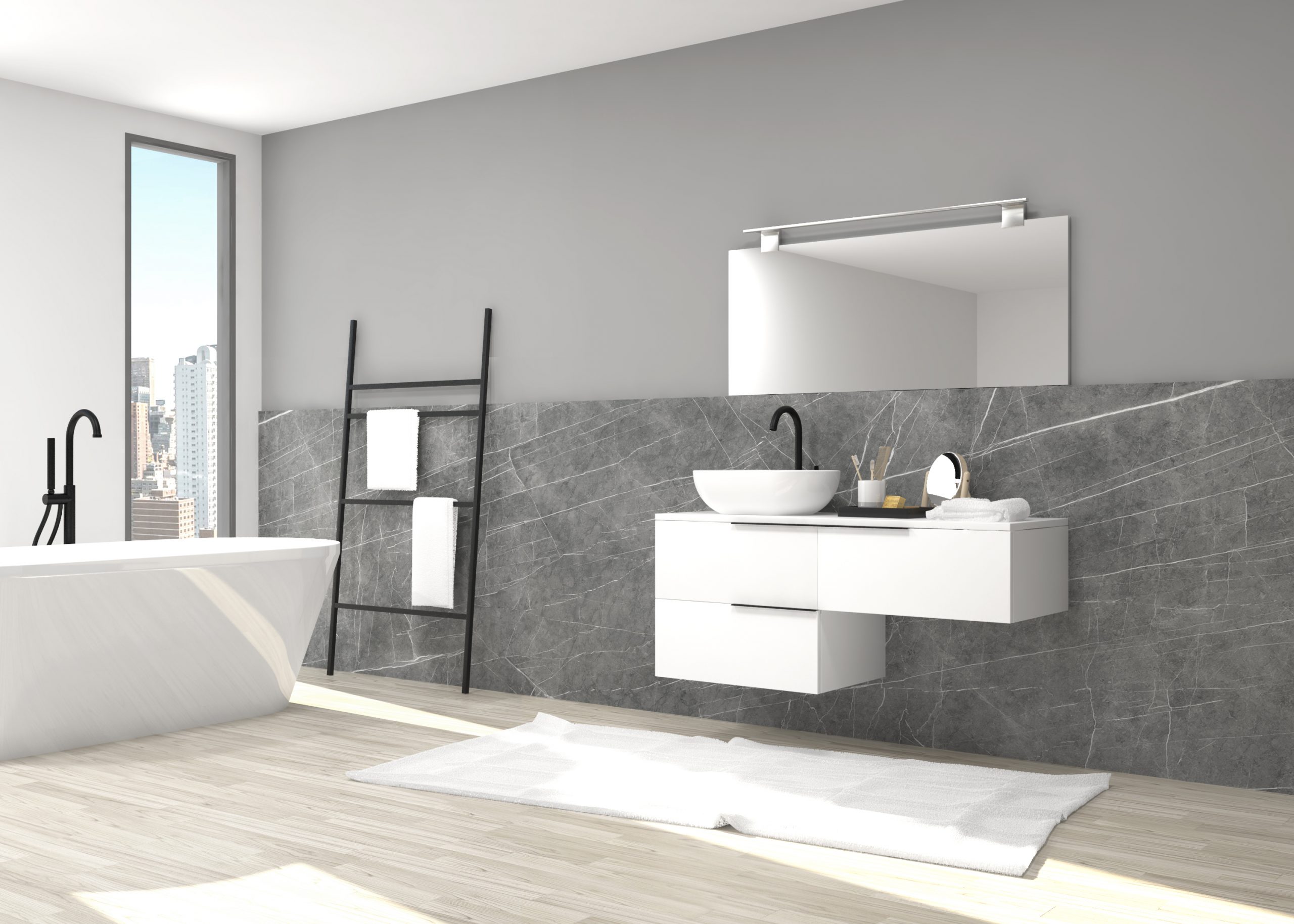 Pack compuesto por mueble de baño realizado en material laminado 19 mm, con tres cajones de gran capacidad y cierre softclosing. Incluye lavabo sobreencimera cerámico de color blanco, espejo liso y foco iluminación LED. Made in Spain.