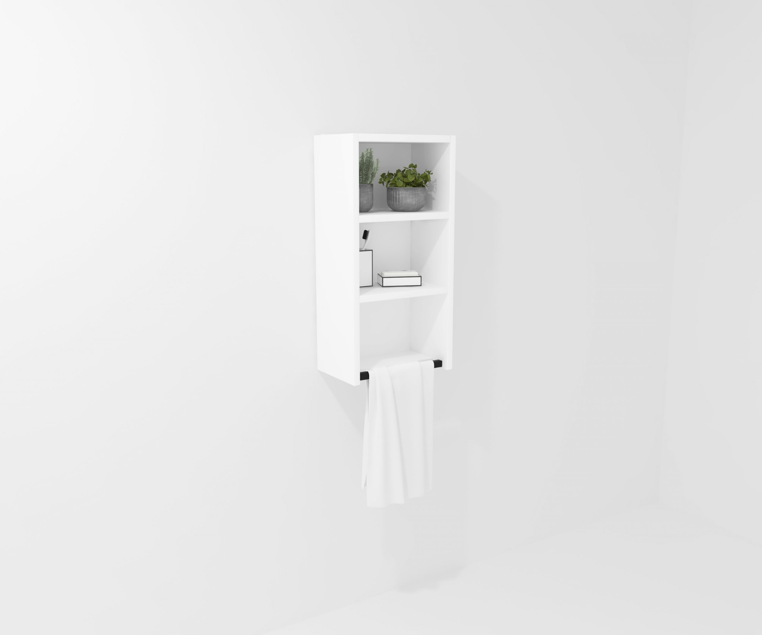 Mueble suspendido formado por módulo de cajón y un fijo decorativo, fabricados en tablero de partículas de 19 mm con recubrimiento melamínico, ecológico y reciclable. Cajón metálico de doble pared de estética minimalista, de costillas finas y líneas rectas, con cierre amortiguado y una capacidad de carga de 25 kg. Cajón con accesibilidad total y espacio trasero disponible.