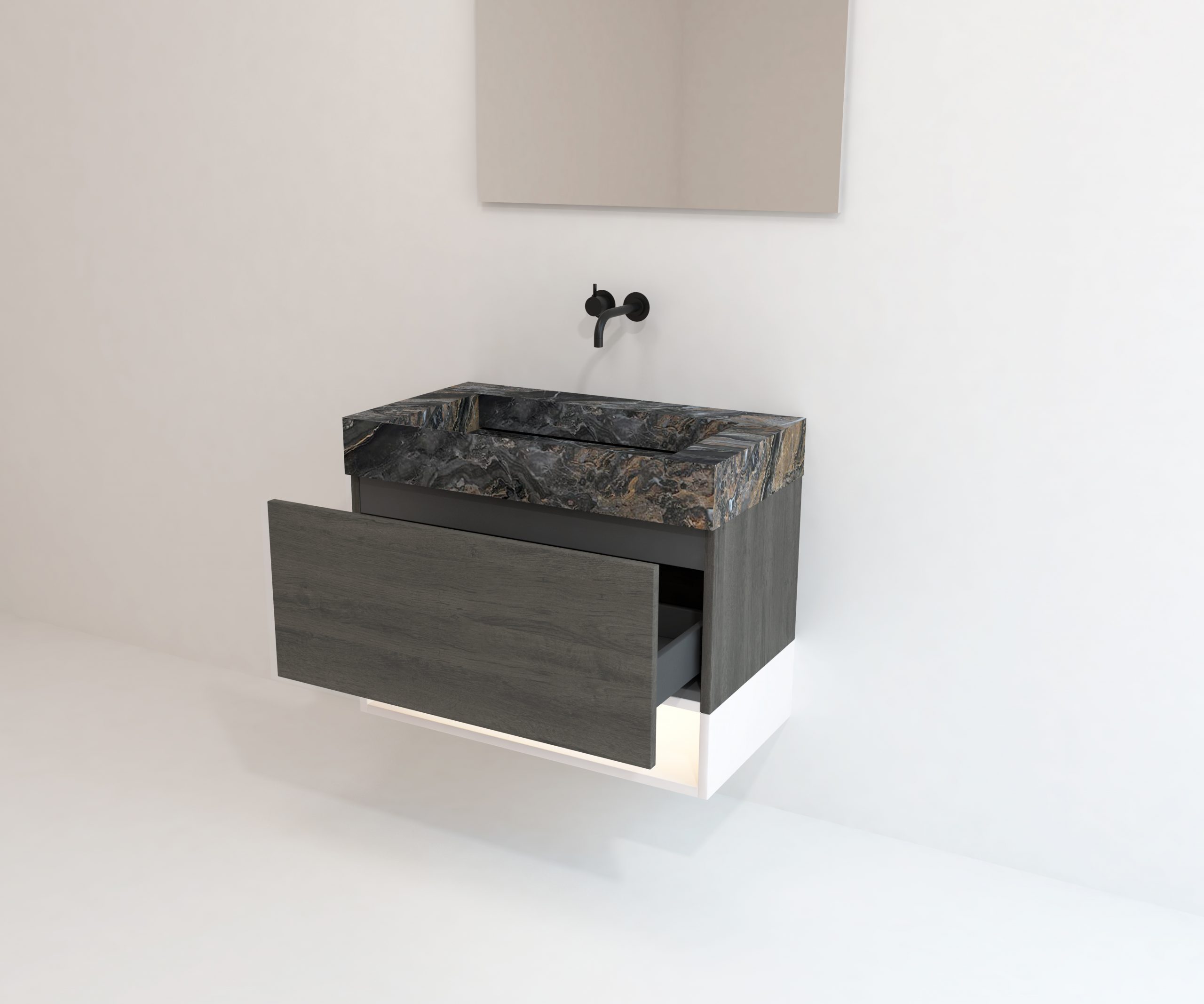 Accesorio toallero perfecto para complementar el mueble de lavabo. Estructura metálica acabado negro mate. Incluye estante de tablero laminado.